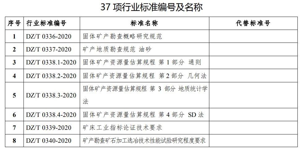 《固體礦產勘查大要研討規范》等37項行業規范和9項行業規范點竄單已經由過程天下天然資本與河山空間計劃規范化手藝委員會檢查,現予核準、宣布,并于宣布之日起實行。編號及稱號見附件。 1. 37項行業規范編號及稱號.doc PDF版下載 2. 9項行業規范點竄單編號及稱號.doc PDF版下載
