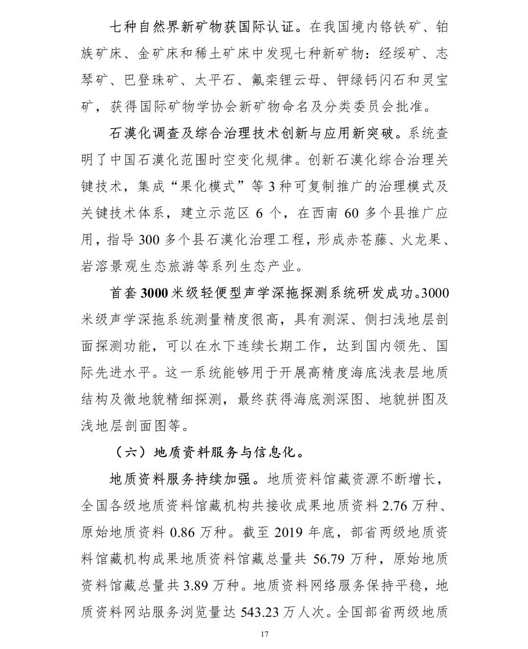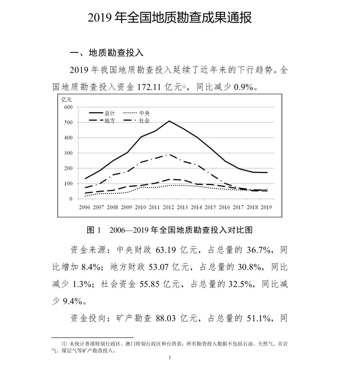 各省、自治區、直轄市天然資本主管部分,新疆出產扶植兵團天然資本主管部分,中國地質查詢拜訪局,各行業地勘部分: 為增強信息交換,按期傳遞地質勘查功效,按照有關請求,我部構造體例《2019年天下地質勘查功效傳遞》。現印送你單元,供參考。 天然資本部辦公廳 2020年5月15日附件 : 2019年天下地質勘查功效傳遞.doc PDF版下載附件: